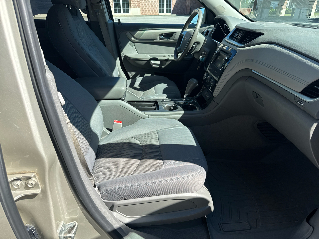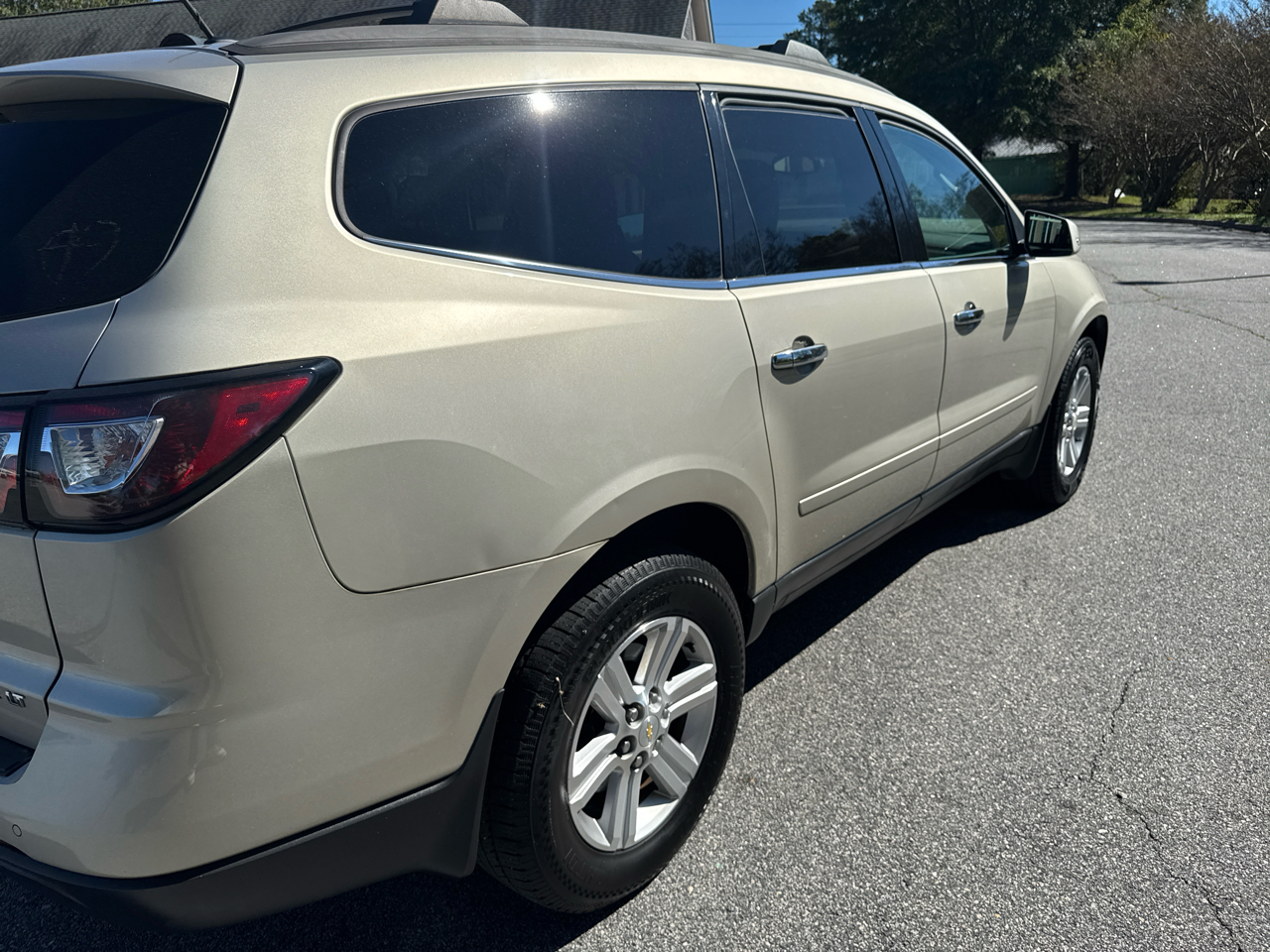 This Tan 2013 Chevrolet Traverse is not just a car, it's a family-friendly adventure waiting to happen! Keep your little ones safe with the child safety door locks while you enjoy the convenience of keyless entry. With a carfax report available, you can hit the road with peace of mind knowing this vehicle's history is crystal clear. Cruise control will make those long road trips a breeze, while the rear spoiler and alloy wheels give this SUV a sporty edge. Whether you're driving around town or heading out on a road trip, the deep tinted glass will keep you cool and comfortable. Worried about those unexpected rain showers? Don't fret, the rear window defogger and rear wiper have got you covered. So throw your gear in the cargo area tiedowns, load up the family in the third-row seats, and let this Chevrolet Traverse take you on your next unforgettable journey. Get ready to make memories on the road in style and safety with this reliable and versatile SUV! ?????